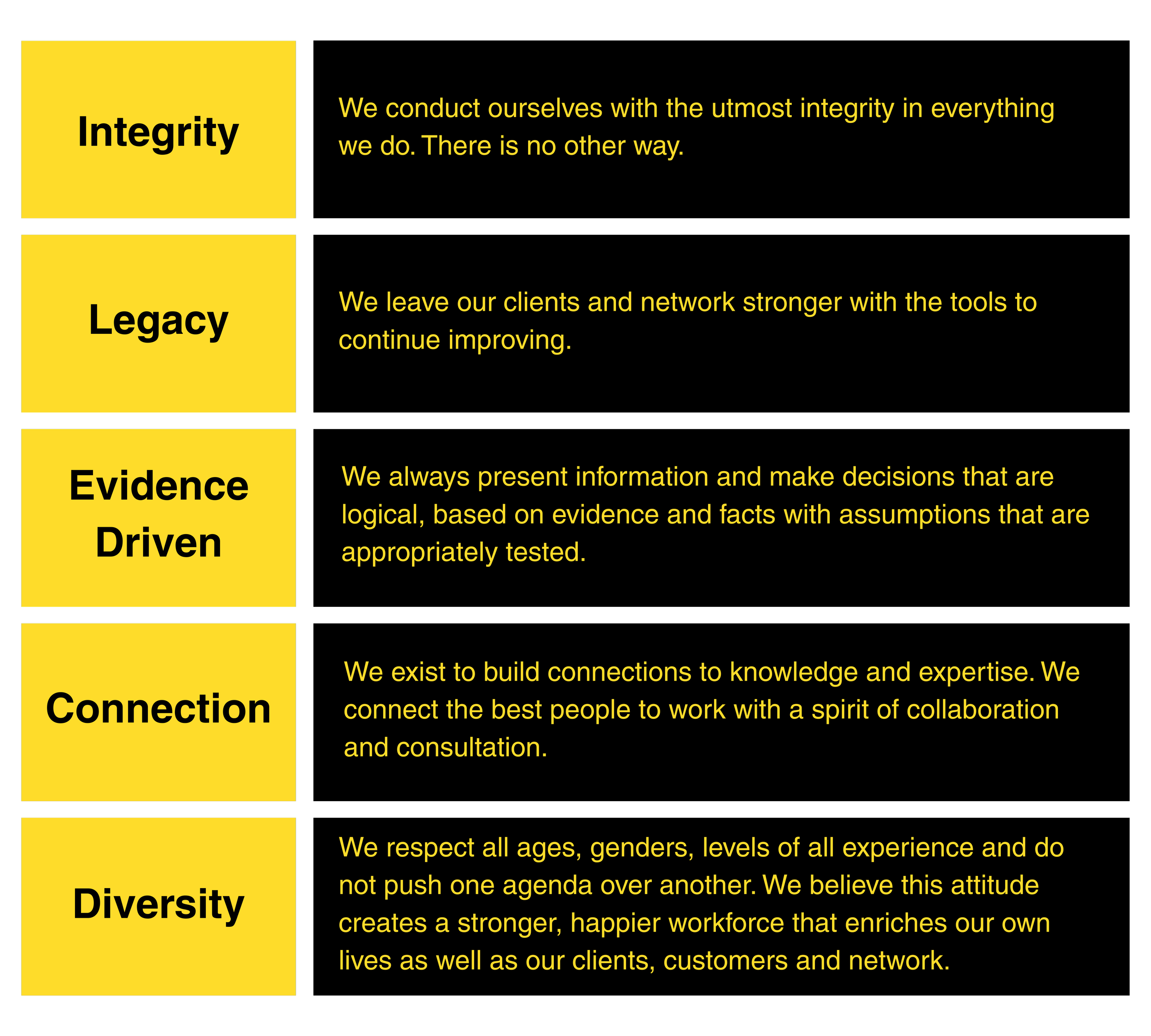 Our people-centred values are built on the foundation of inclusiveness, humility and respect. We’ve developed our values into a culture that is embraced by our team and respected by our clients and colleagues.